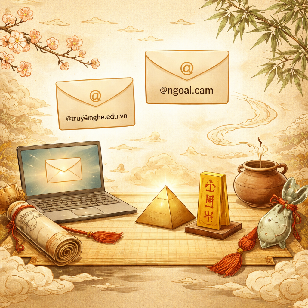 • Các email liên quan đến thông báo khóa học, gửi từ tên miền truyennghe.com, sẽ được chuyển sang định dạng mới: @truyennghe.edu.vn.